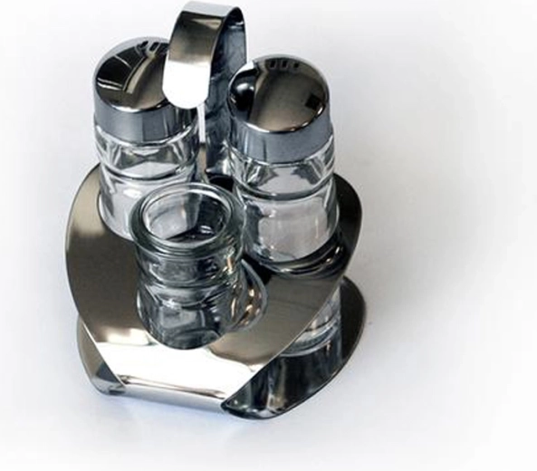 Stylová dochucovací souprava z čirého skla v nerezovém stojánku pro každodenní použití. Nabízí slánku, pepřenku a dózu na párátka, snadné přenášení, jednoduchou údržbu a možnost mytí v myčce. Elegantní design z ní dělá skvělý tip na dárek.