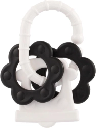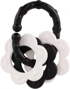 Praktická černobílá kousátka ve 4 tvarech s integrovaným chrastítkem a pohodlným úchytem podporují rozvoj zraku a jemné motoriky už od narození. Vyrobeno ze zdravotně nezávadných materiálů, bezpečných pro každodenní používání.