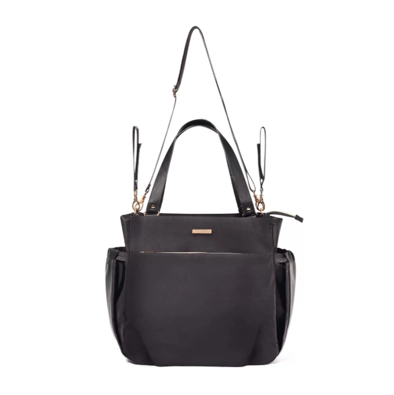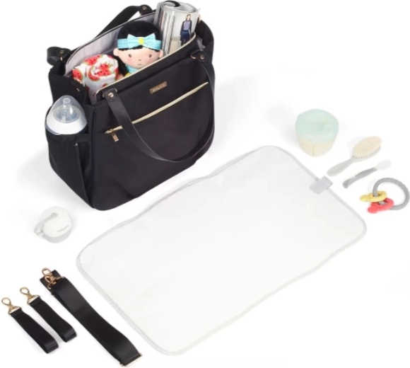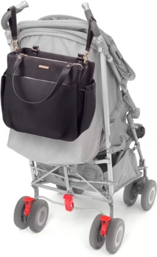 Pevný a odolný materiál s hladkým povrchem se snadno čistí a odolává nárokům každodenního používání i měnícím se povětrnostním podmínkám. Pohodlné držadla, odnímatelný ramenní popruh a boční popruhy pro uchycení na kočárek poskytují maximální flexibilitu při nošení. Součástí je také praktická přebalovací podložka pro pohodlnou péči na cestách.