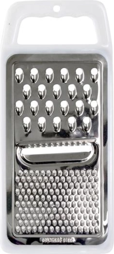Praktické ploché struhadlo z nerezové oceli TORO s pevným plastovým držadlem pro pohodlné a bezpečné použití. Nabízí více funkcí strouhání – jemné, hrubé a plátkování pro univerzální využití v kuchyni.