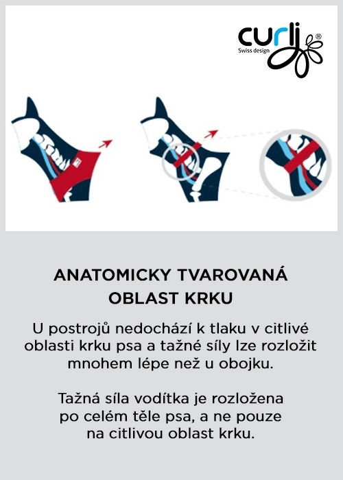 Anatomicky tvarovaná oblast krku a elastické švy rozkládají tah po celém těle, takže pes dýchá volně a pohybuje se přirozeně.