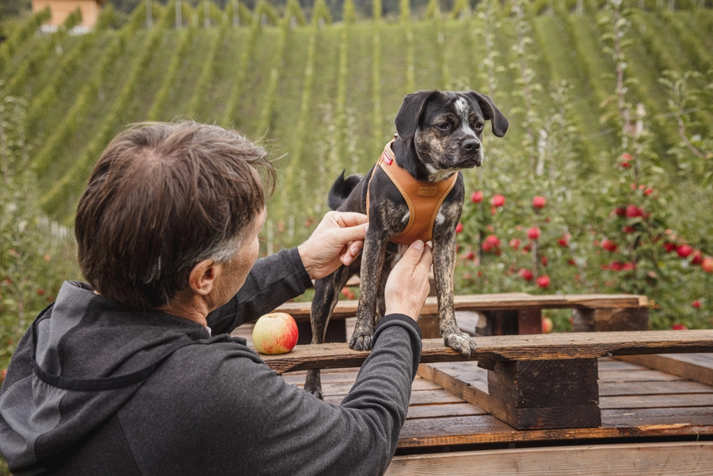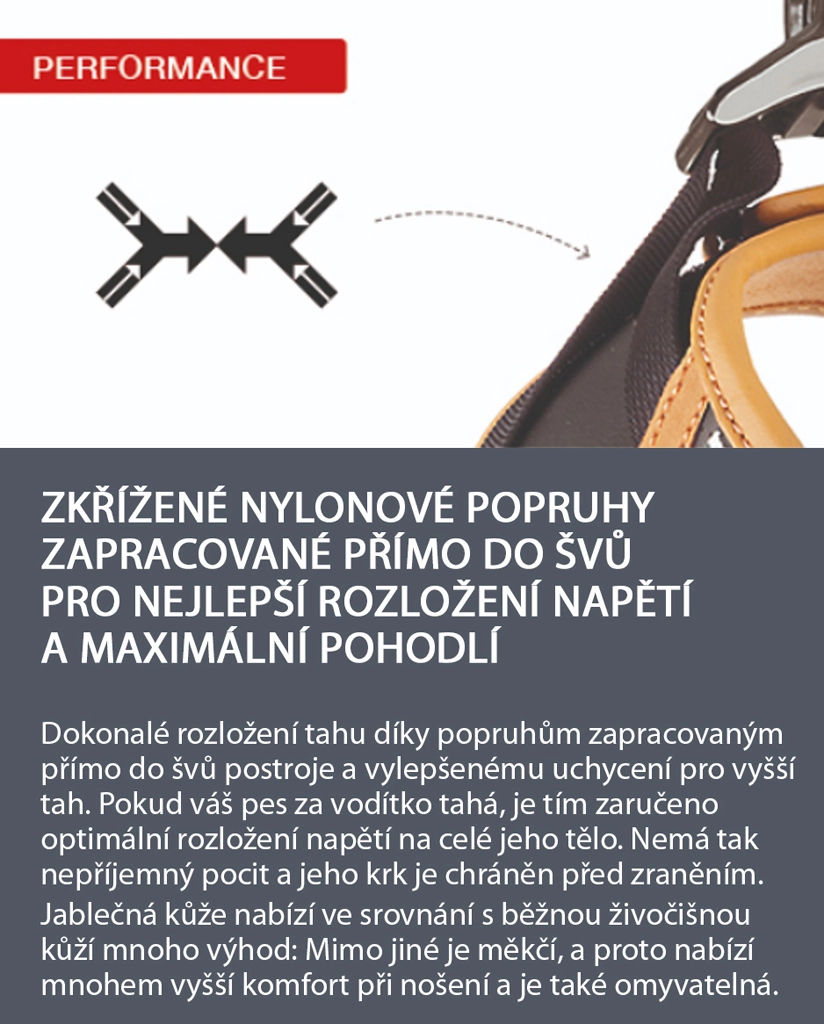 Perforovaná struktura jablečné kůže zvyšuje cirkulaci vzduchu, snižuje zahřívání a chrání citlivou kůži psa. Hebký povrch je příjemný i při delším nošení.