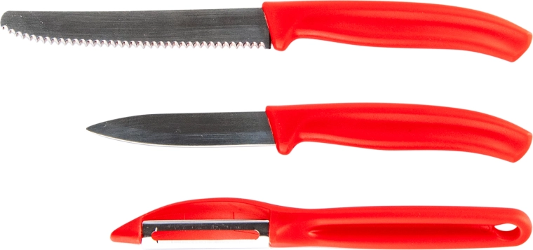 Sada Provence Exclusive kombinuje funkčnost a jednoduchý design pro každou kuchyň. Najdete v ní malý nůž s rovným ostřím (čepel 8 cm) ideální na čištění a krájení zeleniny či ovoce, nůž s vlnkovaným ostřím a kulatou špičkou (čepel 11 cm) na pečivo, rajčata a další potraviny s jemnou slupkou a univerzální škrabku pro rychlé loupání.