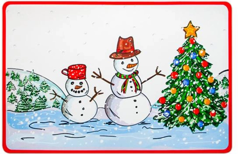 Vylaďte sváteční tabuli praktickým prostíráním s veselým sněhulákem. Odolný plast chrání desku stolu před znečištěním a poškozením, přitom se velmi snadno čistí. Díky univerzálním rozměrům se hodí na většinu jídelních stolů a dodá jim zimní a vánoční atmosféru.