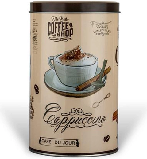 Tato kulatá plechová dóza v elegantním retro stylu dodá vaší kuchyni šmrnc a zároveň udrží potraviny déle čerstvé. Design „Café du Jour“ potěší milovníky kávy i všechny, kdo mají rádi praktické a dekorativní doplňky.