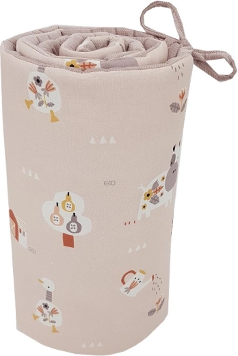Praktické vázání na šňůrky umožňuje snadné a stabilní upevnění k většině standardních postýlek. Rozměr 180 × 35 cm pokryje delší stranu a část kratší strany postýlky nebo tři kratší úseky dle potřeby. Jemný pudrově růžový odstín a motivy My Farm krásně ladí s další výbavou v dětském pokoji.