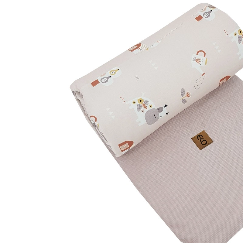 Elegantní a funkční chránič do dětské postýlky EKO VELVET My Farm vyniká měkkým dotykem, kvalitní výplní a nadčasovým vzhledem. Kombinace 100% bavlny s velurovým povrchem VELVET poskytuje miminku pohodlí a pocit bezpečí, zatímco hypoalergenní, prodyšná výplň tlumí nárazy o bočnice postýlky.