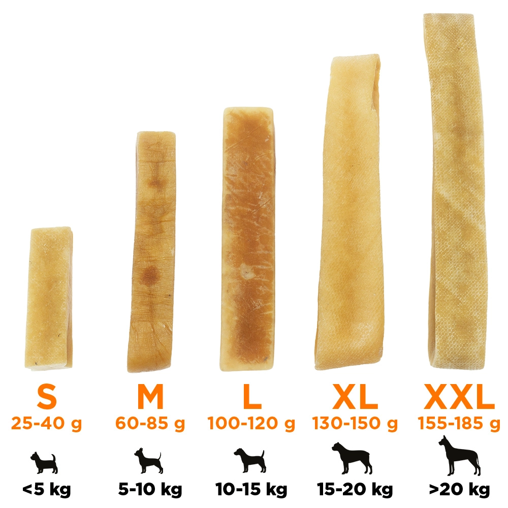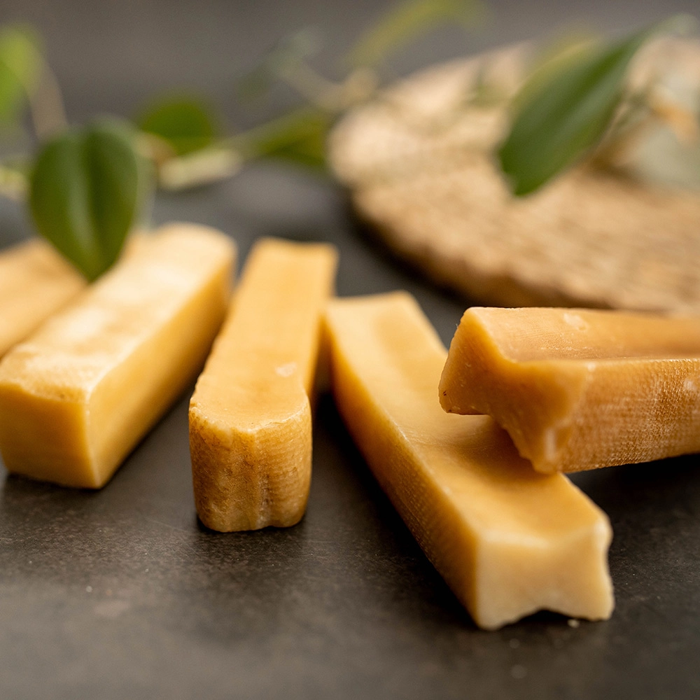 Tvrdá struktura pamlsku z himálajského sýra přirozeně obrušuje zubní povlak a pomáhá snižovat tvorbu zubního kamene, zatímco pes si užívá dlouhé žvýkání.