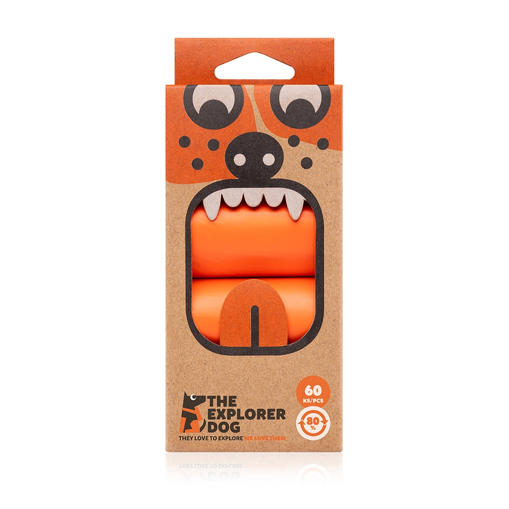 Udržitelná volba pro každodenní venčení. Oranžové sáčky EXPLORER DOG jsou navržené tak, aby byly spolehlivé, praktické a šetrné k přírodě. Díky pevnému materiálu z 80 % PCR (post-consumer recyklát) se nemusíte bát protržení ani protečení a odpad snadno a hygienicky uzavřete.