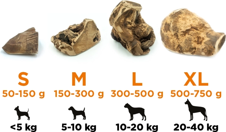 Kořen zaujme psy, kteří rádi žvýkají větve či nábytek. Bezpečně je zabaví a současně podpoří dentální hygienu.
