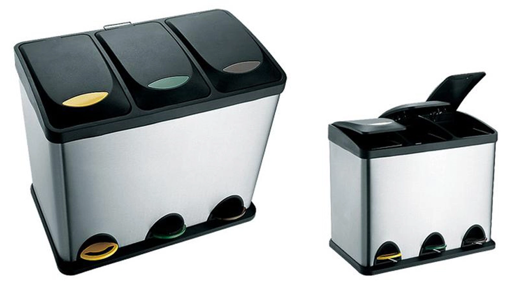 Elegantní a funkční řešení pro moderní domácnost: tento nerezový koš na tříděný odpad nabízí tři oddělené nádoby po 8 litrech, takže plast, papír či směsný odpad roztřídíte snadno a přehledně. Díky kompaktním rozměrům se vejde i do menších prostor, přesto poskytne dostatečný objem pro každodenní používání.