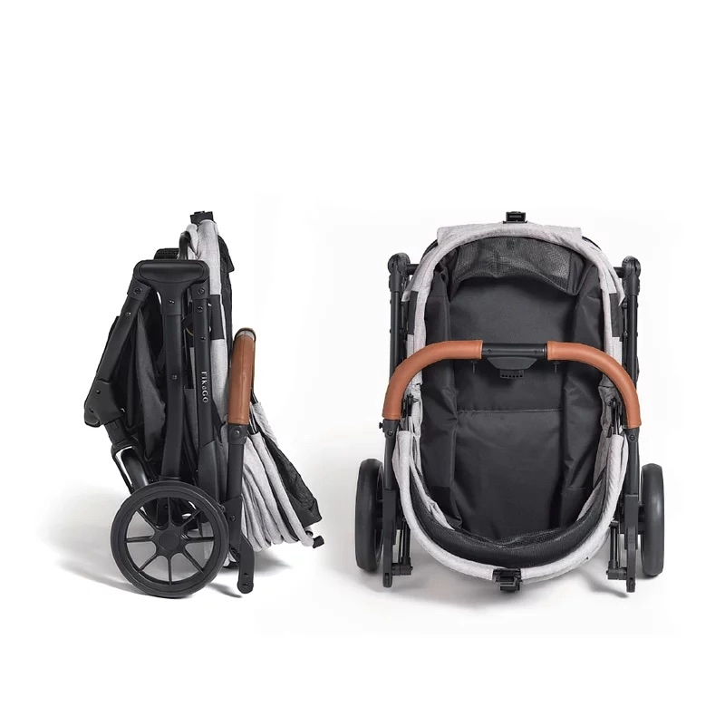 Elegantní kočárek pro mazlíčky s severským designem, který se skládá jednou rukou a po složení sám stojí. Nabízí extra prostornou vaničku, voděodolnou recyklovanou stříšku se síťovaným okénkem pro větrání a odpružená otočná kola z EVA pěny pro pohodlnou jízdu i v náročnějším terénu. Praktický koš do 3 kg a rukojeť z PU kůže zajistí komfort na každé vycházce.