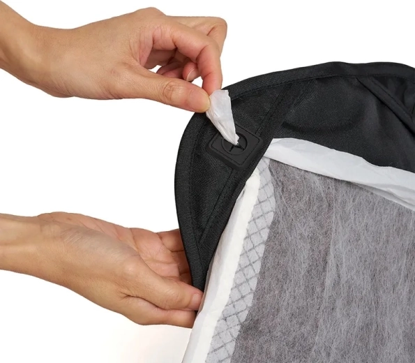 Extra velká vanička se síťovaným okénkem pro stálé proudění vzduchu a skvělý výhled. Stříšku otevřete po i proti směru jízdy, uzavření jistí patentovaný klip.