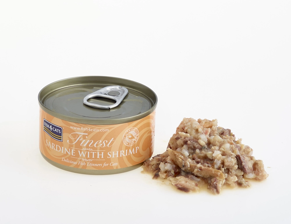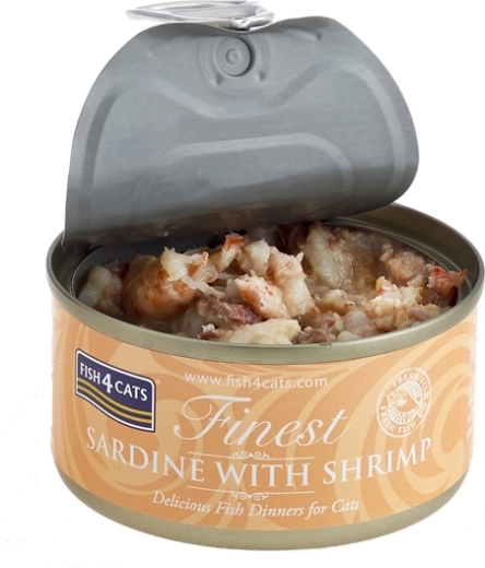 FISH4CATS Finest sardinka s krevetami je kompletní mokré krmivo, které staví na síle mořských surovin. Díky 65 % sardinek a porci krevet je mimořádně chutné i pro vybíravé kočky a podporuje přirozené nutriční potřeby – od kvalitních bílkovin až po prospěšné omega‑3.