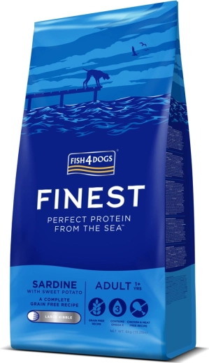 Vyvážené krmivo FISH4DOGS se sardinkou a sladkými bramborami je ideální pro každodenní výživu velkých dospělých psů. Sardinka z udržitelných zdrojů přirozeně dodává vysoký obsah omega‑3, které podporují klouby, kůži a srst. Sladké brambory jsou výborným bezobilným zdrojem energie a napomáhají šetrnému trávení.