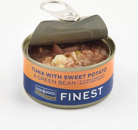 FISH4DOGS Finest spojuje vysoký podíl tuňáka (50 %) s jemnými batáty a křupavými zelenými fazolkami. Lehké, chutné a šetrné složení bez obilovin je ideální jako doplněk k hlavnímu krmivu nebo jako voňavá odměna. Díky šťavnaté konzistenci se snadno podává a dobře tráví.