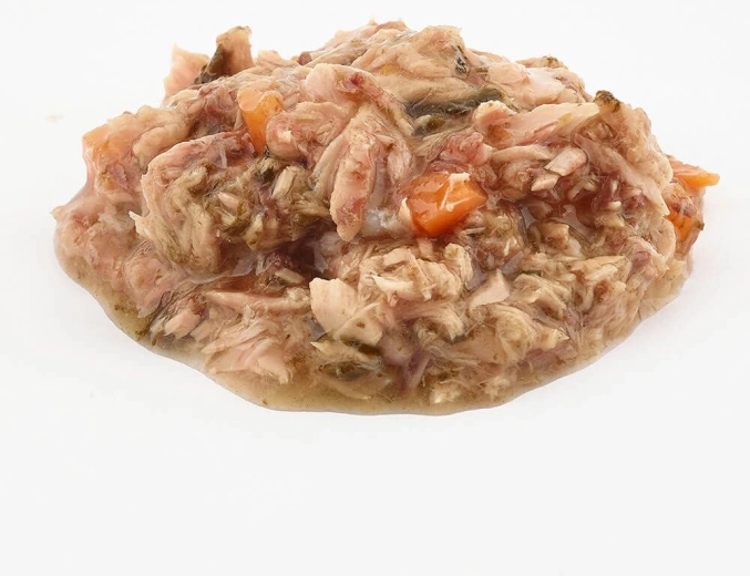 Tato šťavnatá konzerva kombinuje 50 % tuňáka s výživným špenátem a mrkví. Díky jednoduchému složení a bezobilné receptuře je vhodná i pro citlivé psy. Lehce stravitelná textura potěší i mlsné jazýčky.