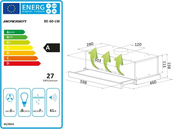 Díky dvěma pracovním režimům jej můžete zapojit jako odtah do komínového/ventilačního potrubí (Ø 120 mm), nebo jako recirkulaci s volitelným uhlíkovým filtrem (typ Berdsen TYP-A). Mechanické ovládání a 2 rychlosti usnadní každodenní používání, úsporné LED osvětlení 4 W zlepší přehled nad vařením a 5vrstvý hliníkový tukový filtr účinně zachytí mastnotu.