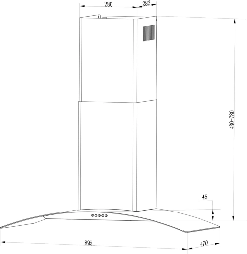 Díky tlačítkovému ovládání snadno zvolíte jeden ze tří rychlostních stupňů. Dva hliníkové 5vrstvé tukové filtry zachycují mastnotu a lze je pohodlně vyjmout a vyčistit. Zařízení může pracovat buď jako odtah do komína (Ø 150 mm), nebo jako recirkulace (s volitelnými uhlíkovými filtry typu S – nejsou součástí balení). Teleskopický komín umožňuje přizpůsobení výšky v rozmezí 43–78 cm a usnadní montáž v různých dispozicích.