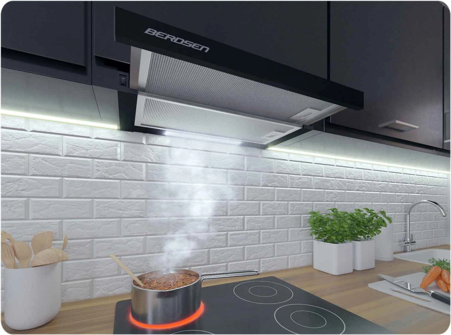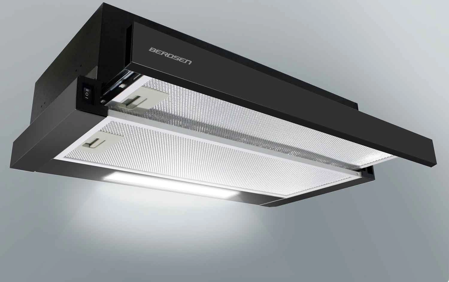 Odsavač BERDSEN BT-230 v provedení černý mat ladí s moderními i minimalistickými interiéry. LED světlo zlepší přehled nad varnou deskou, mechanické ovládání je spolehlivé a intuitivní a dvojice zesílených 3vrstvých hliníkových filtrů efektivně zachycuje mastnotu a lze je snadno vyjmout a vyčistit.