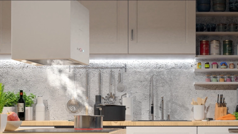 Pohodlně měňte rychlost, zapínejte světlo či časovač odkudkoli v kuchyni. Kombinace tlačítek na těle odsavače a kompaktního dálkového ovladače zajišťuje maximální komfort.