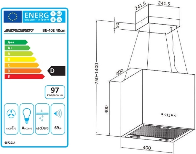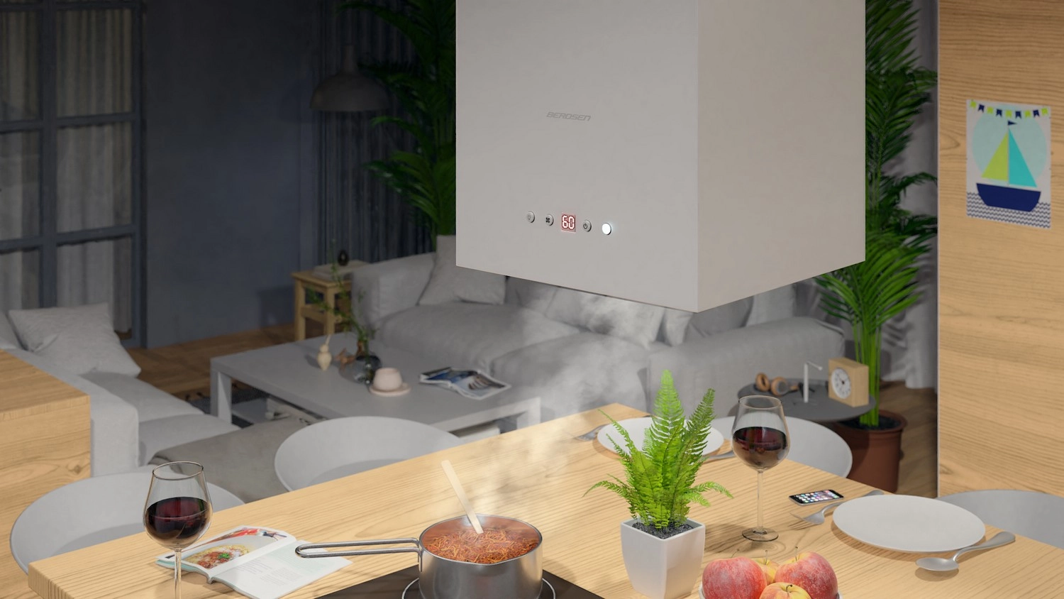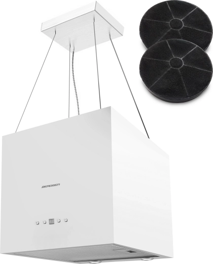 Odsavač par Berdsen 40 cm je kompaktní řešení pro kuchyňské ostrůvky, které spojuje funkčnost a moderní design. Bílé ocelové tělo se snadno kombinuje s nábytkem, zatímco úsporné LED (2 × 2 W) zajišťují příjemné pracovní světlo. Režim recirkulace s dvěma přiloženými uhlíkovými filtry účinně pohlcuje pachy a mastnotu, takže není nutné napojení na komín.