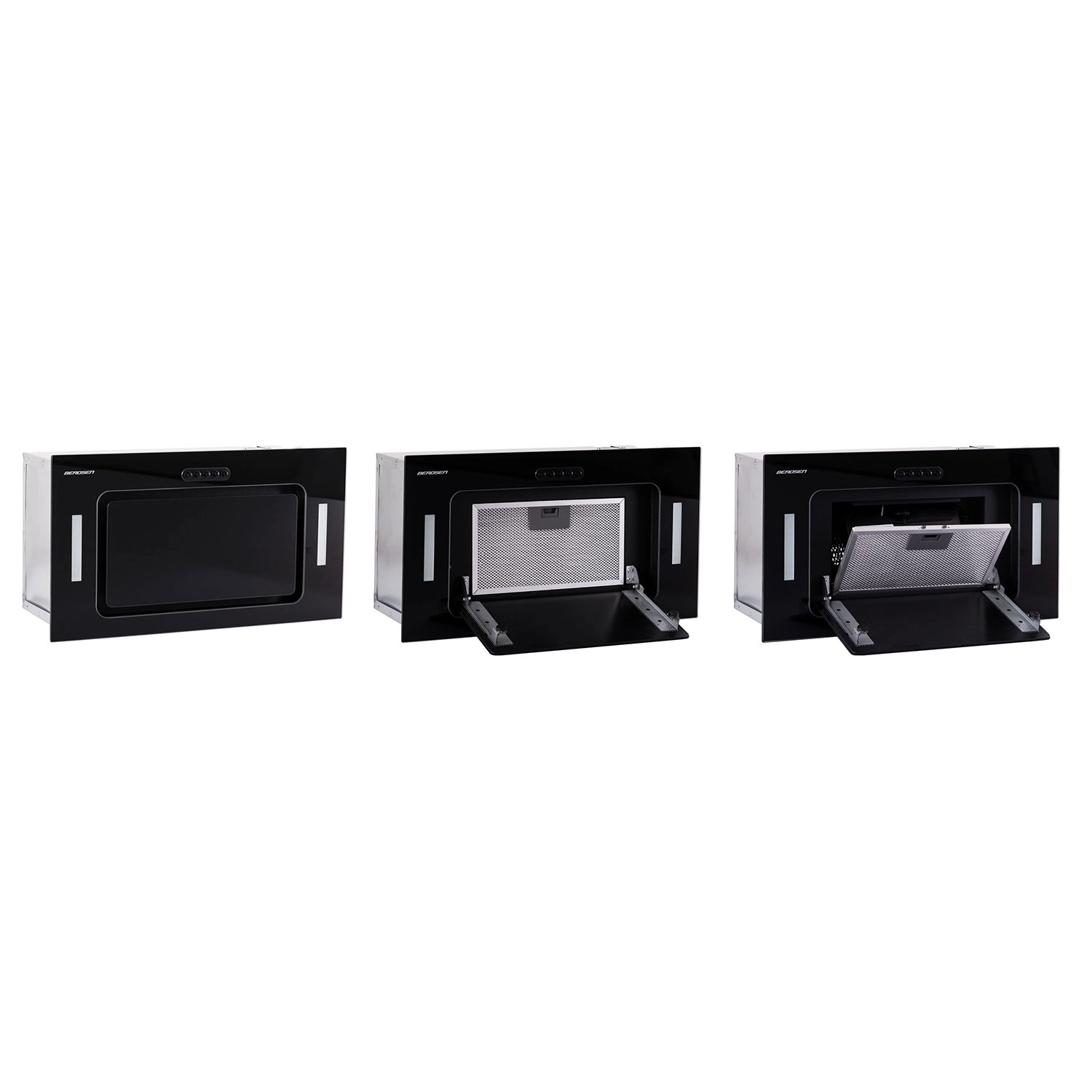 Elegantní podskříňkový odsavač par BERDSEN BE-52A v černém skle nabízí vysoký výkon až 380 m³/h, 3 rychlosti a úsporné dvojité LED osvětlení. Může pracovat jako odtah i recirkulace, má odolný 3vrstvý hliníkový filtr a mechanické ovládání pro jednoduché použití. Minimalistický design skvěle zapadne do moderní kuchyně a účinně pohlcuje pachy, páru, mastnotu i prach.