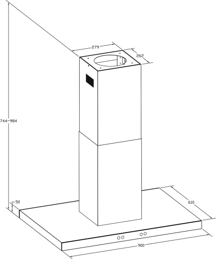 - 744–984 mm (teleskopický komín)