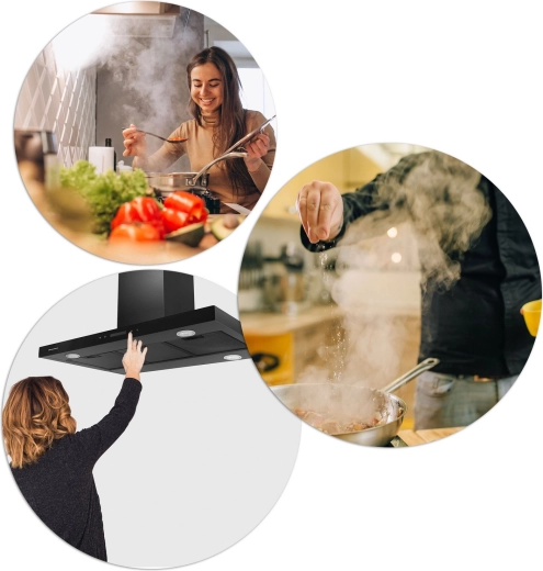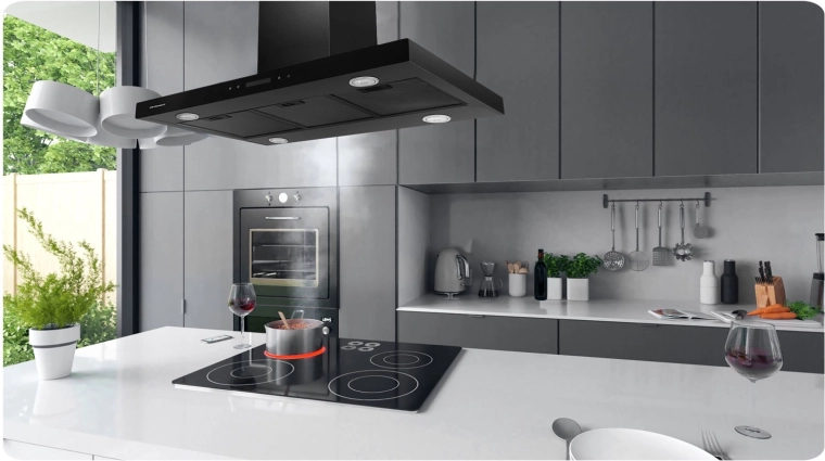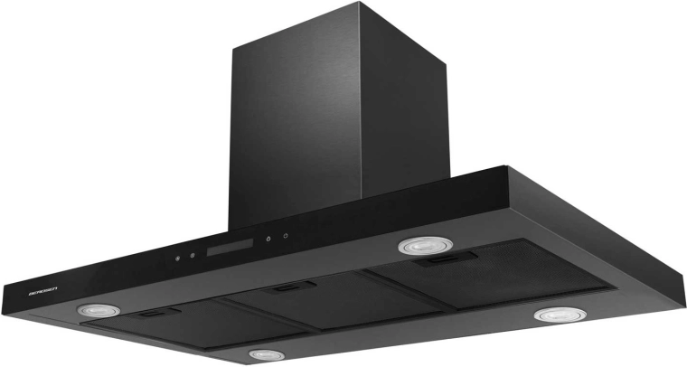 Stylový ostrůvkový digestor BERDSEN BE-90E v černé nerezové oceli kombinuje vysoký výkon až 540 m³/h, tichý chod a úsporné LED osvětlení. Nabízí 3 rychlosti, dotykové ovládání a provoz ve dvou režimech – jako odtah do komína nebo recirkulace s uhlíkovým filtrem.