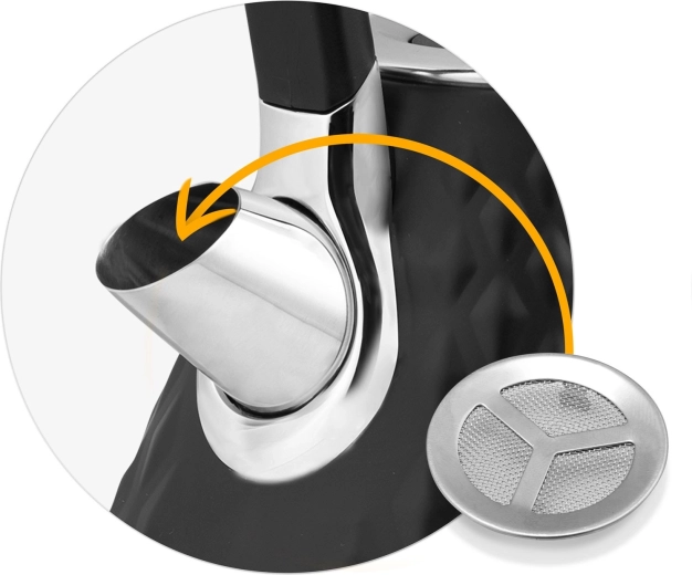 Jemný antikalový filtr ve výlevce zachytává usazeniny, lze jej snadno vyjmout, opláchnout nebo vyměnit za nový pro dokonale čistý nápoj.