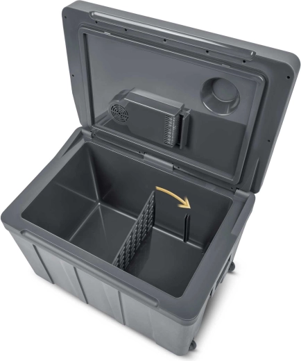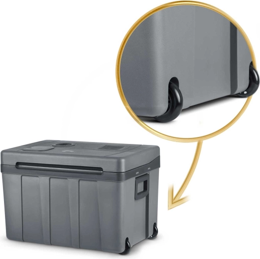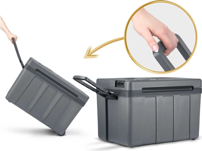 Chladnička dokáže chladit až o 15 °C pod okolní teplotu a v režimu ohřevu udržet pokrmy až na +65 °C – ideální pro teplé jídlo na cestách. Skládací rukojeť, integrovaná kolečka a pevné madla usnadňují přenášení. Po odpojení od proudu si udrží teplotu až 3 hodiny, takže se hodí na pláž, piknik i k ohni.