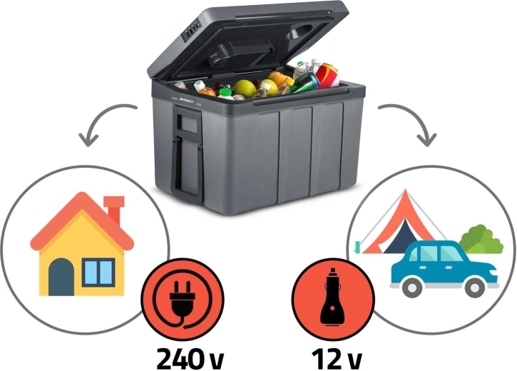 Tato prostorná 50l termoelektrická chladnička s funkcí ohřevu je ideální parťák na výlety, kempování i dlouhé jízdy autem. Díky dvojitým stěnám a kvalitní pěnové izolaci udržuje potraviny a nápoje déle svěží, zatímco dva ventilátory zajišťují rovnoměrné proudění chladu v celém prostoru. Praktické napájení z 12 V zásuvky v autě i ze sítě 100–240 V umožní spolehlivý provoz doma i na cestách.