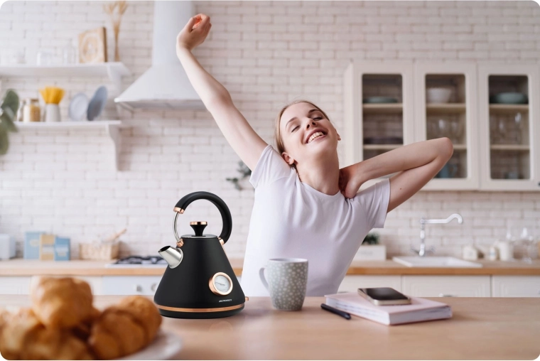 Vestavěný analogový teploměr vám umožní sledovat teplotu vody v reálném čase a připravit čaj či kávu při ideální teplotě – bez odhadování.