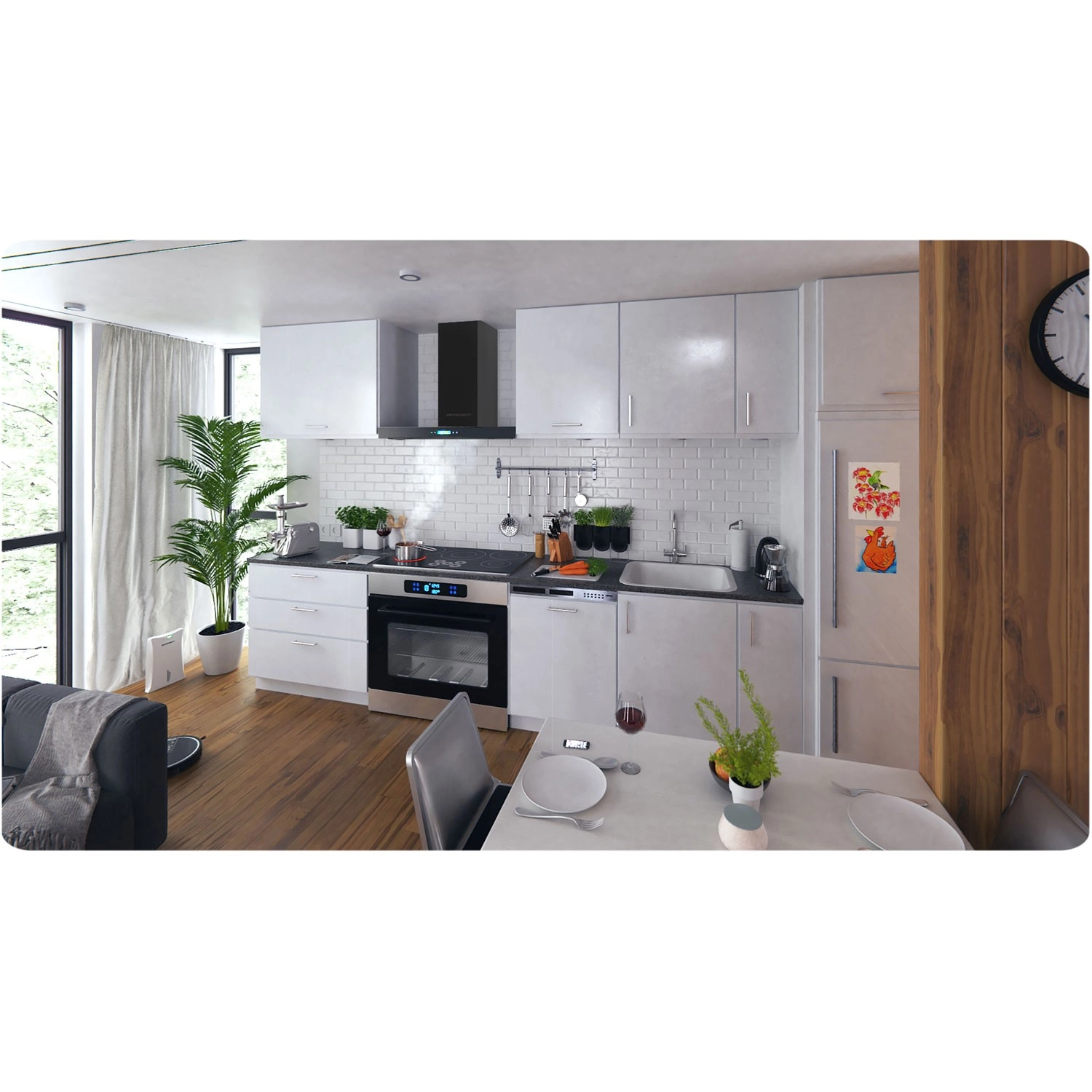 Flexibilní instalace umožňuje provoz jako odtah do komína (Ø 150 mm) nebo jako recirkulace s aktivními uhlíkovými filtry (volitelné). Robustní 3vrstvé hliníkové filtry zachytí mastnotu a pomohou udržet kuchyň čistou. Dvě teleskopické krycí lišty komína usnadňují přizpůsobení výšky montáže.