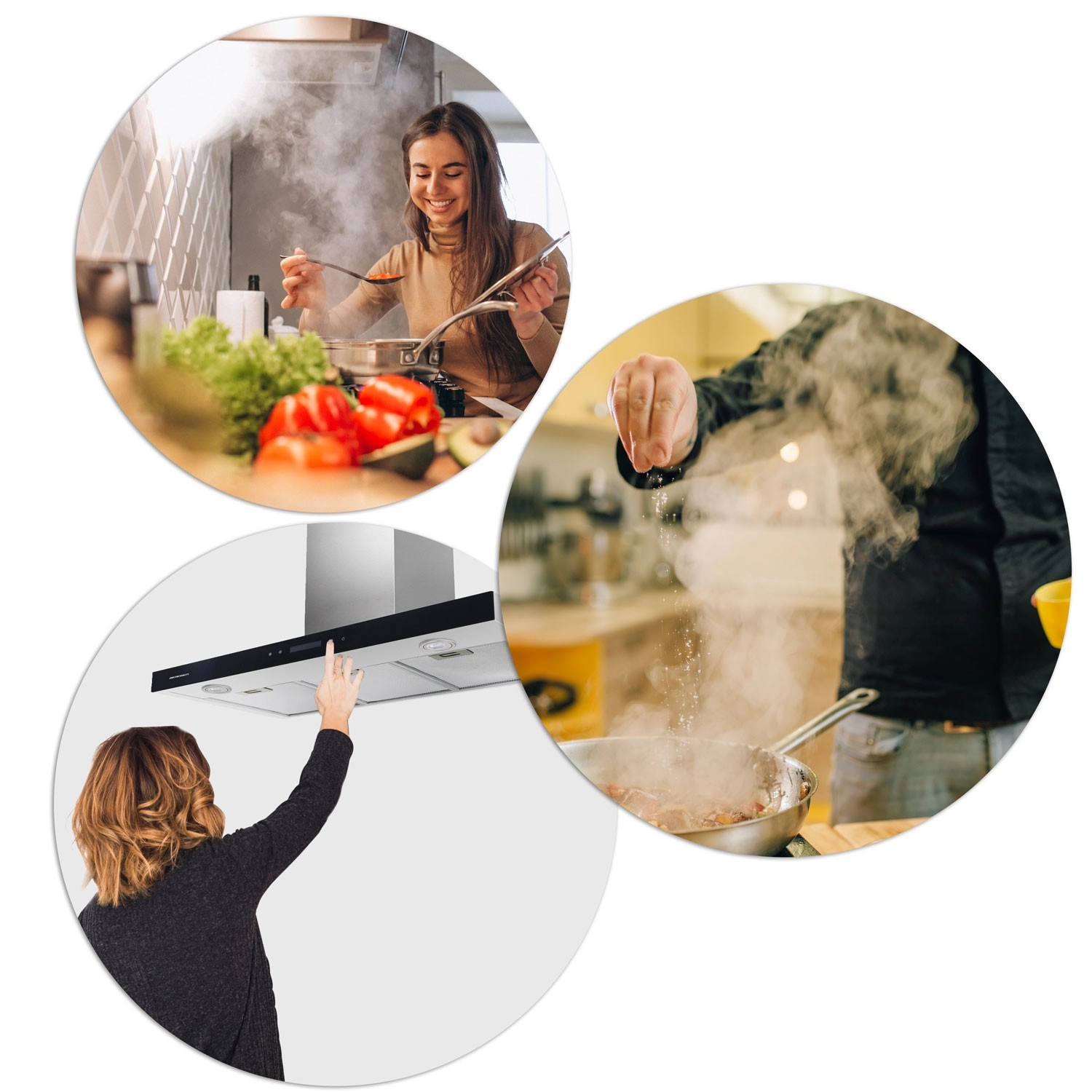 Výkonný motor 160 W s maximem 750 m³/h rychle odvádí páru a pachy. Snadno si zvolíte ze 3 úrovní výkonu podle aktuálního vaření.