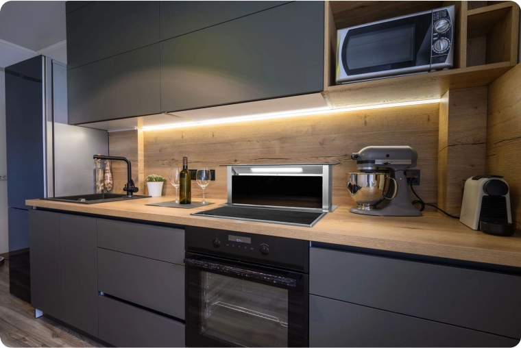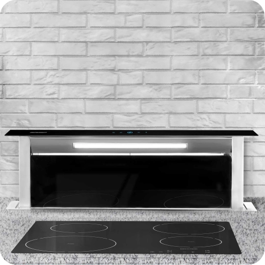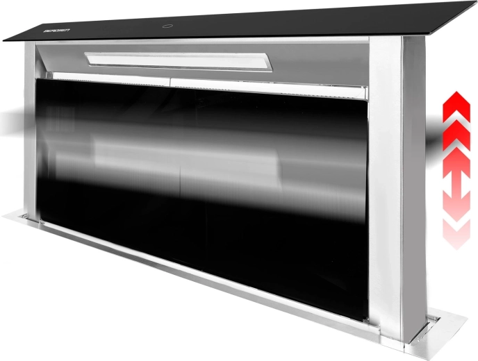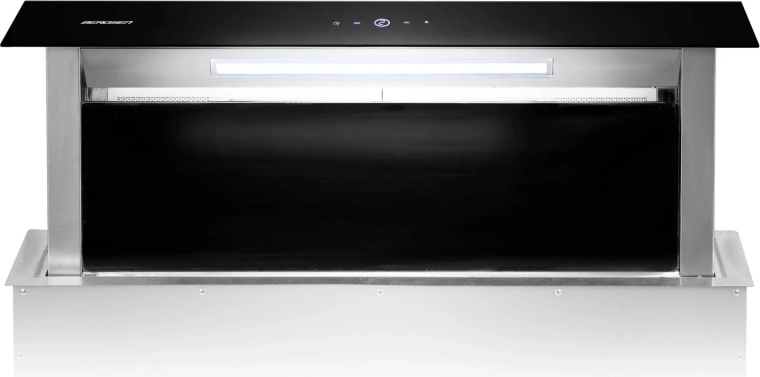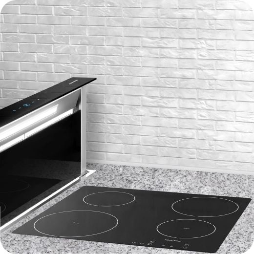 Odsavač se při vaření elegantně vysune z pracovní desky a po dokončení se skryje. Získáte maximální výkon bez kompromisů v estetice.