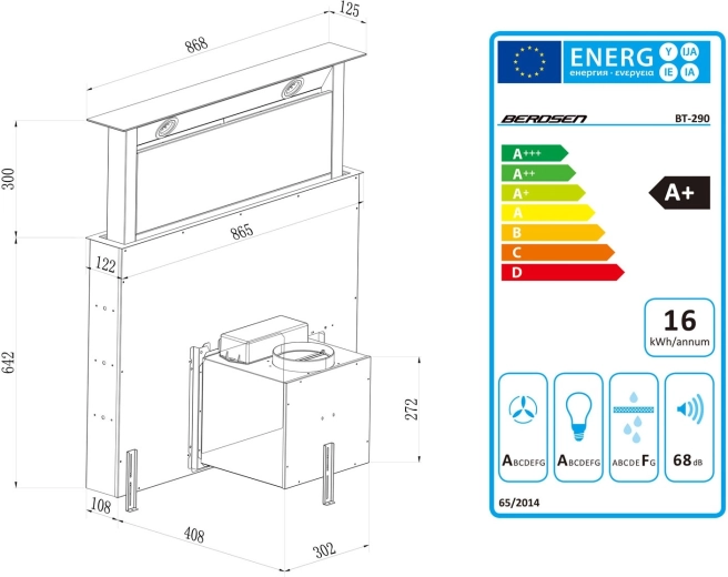 Odsavač lze instalovat za varnou desku nebo z boku podle dispozice. Funguje jako odtah do komína (DN 150) nebo jako recirkulace s uhlíkovým filtrem (typ BT-B). Devět rychlostí umožní přesné nastavení výkonu, dotykový panel je intuitivní a snadno se udržuje.