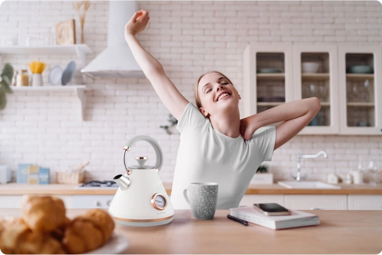Snadno zvolíte ideální teplotu pro zelený čaj, kávu i bylinky. Ciferník na těle konvice přehledně ukazuje aktuální teplotu vody.