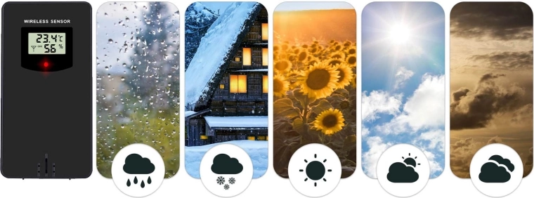 Stabilní komunikace mezi senzorem a meteostanicí s dosahem až 60 m zajišťuje aktuální data o počasí v reálném čase.