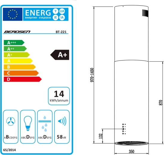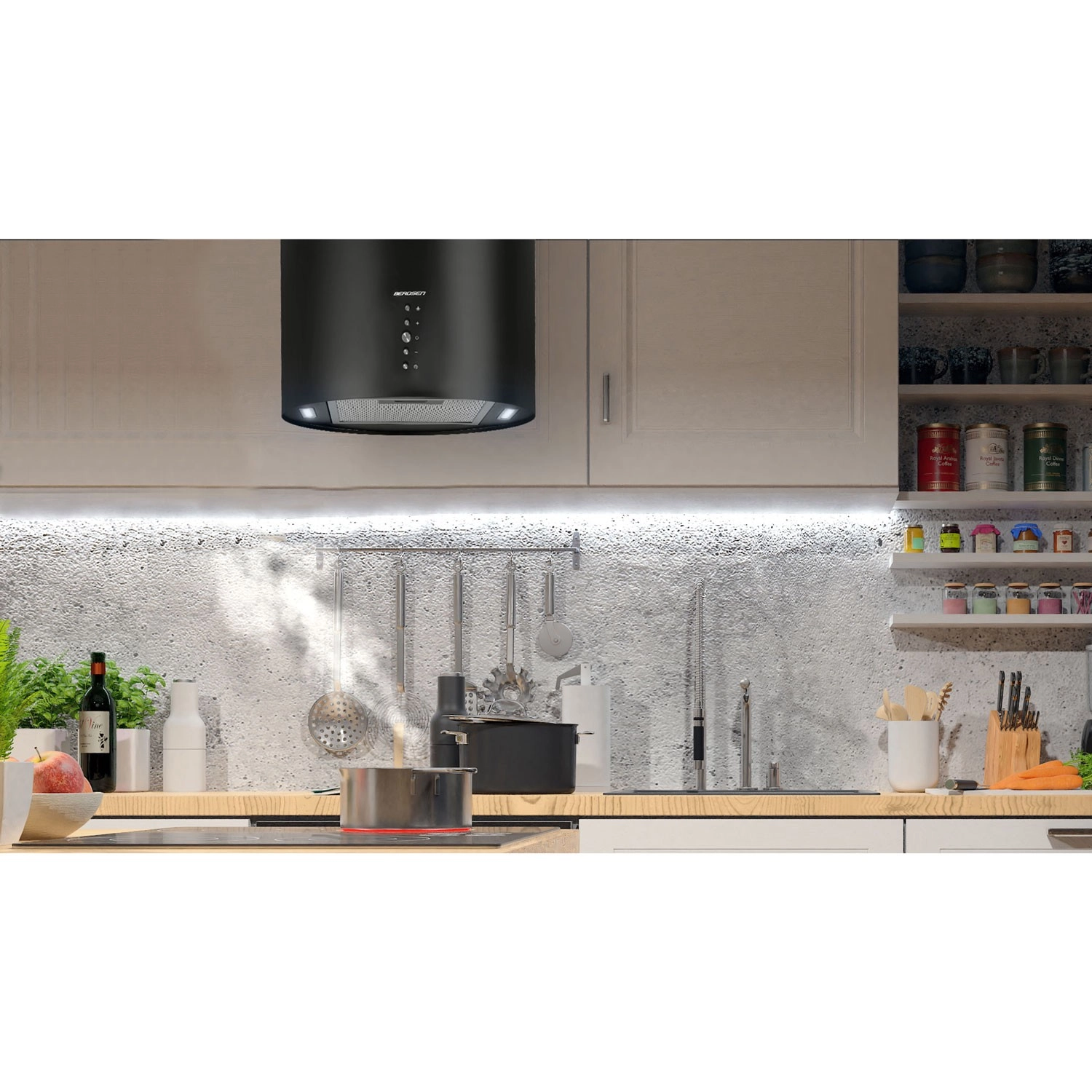 Stylový válcový odsavač par BERDSEN BT-221 v matné černé se stane designovou dominantou vaší kuchyně. Nabízí účinné odsávání par a pachů s maximálním výkonem 460 m3/h, přičemž si zachovává kultivovaný hlukový projev do 58 dB. Díky možnosti odtahu do komína i recirkulace s uhlíkovými filtry se snadno přizpůsobí dispozici kuchyně.