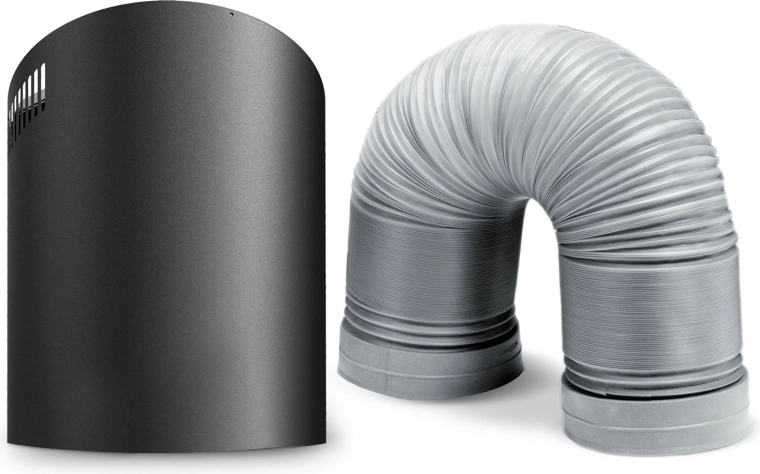 Součástí balení je krycí maska i flexibilní odtahová roura. Rychlá montáž a čisté vedení vzduchu bez složitých úprav.