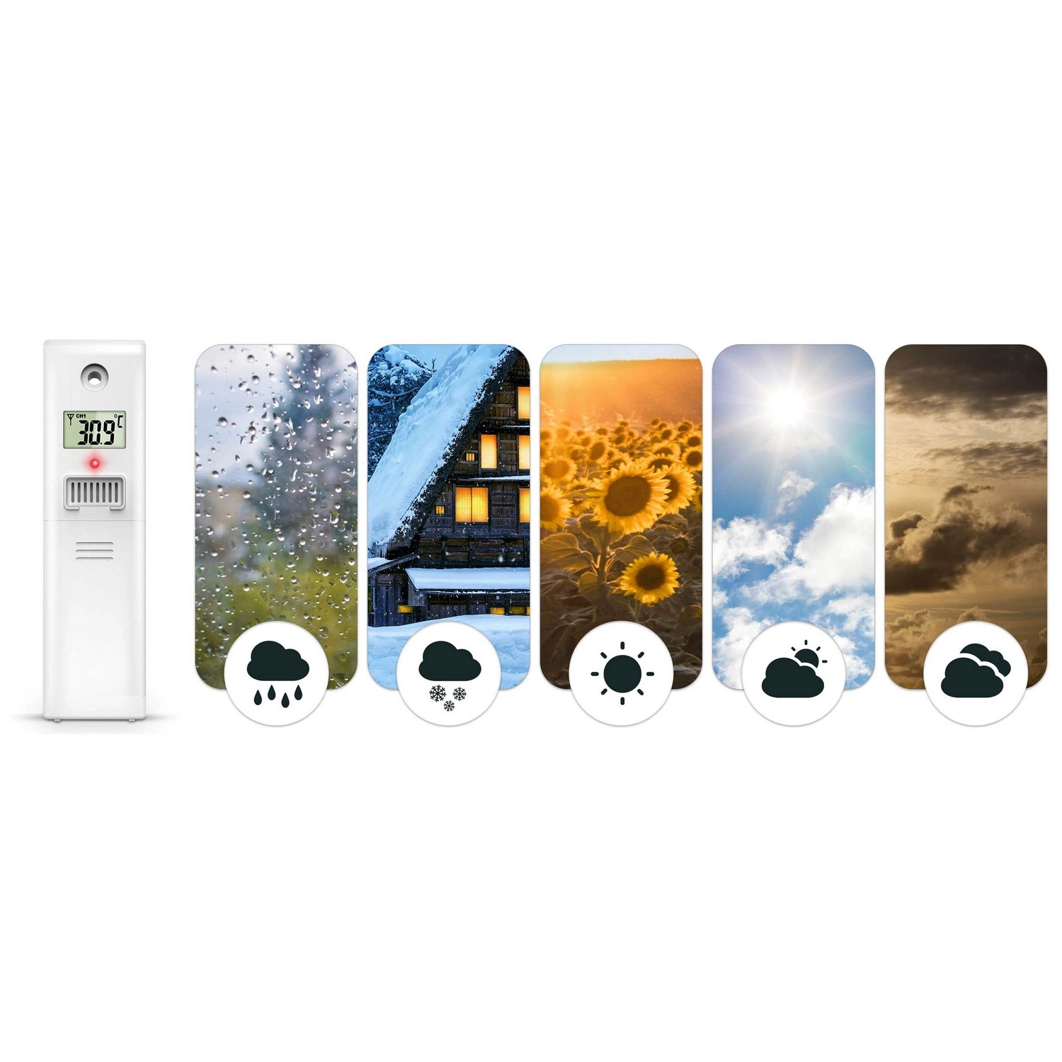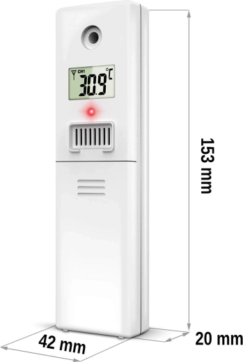 Zařízení měří teplotu v rozmezí -40 °C až +70 °C a relativní vlhkost 20–95 %. Díky napájení 2× AAA (nejsou součástí balení) a štíhlému provedení 15,3 × 4,2 × 2 cm je instalace rychlá a nenápadná. Meteostanice BERDSEN BD-905 zvládne současně obsloužit až 3 tyto senzory, takže získáte přehled o klimatu na více místech najednou.