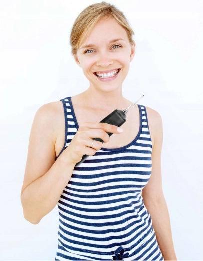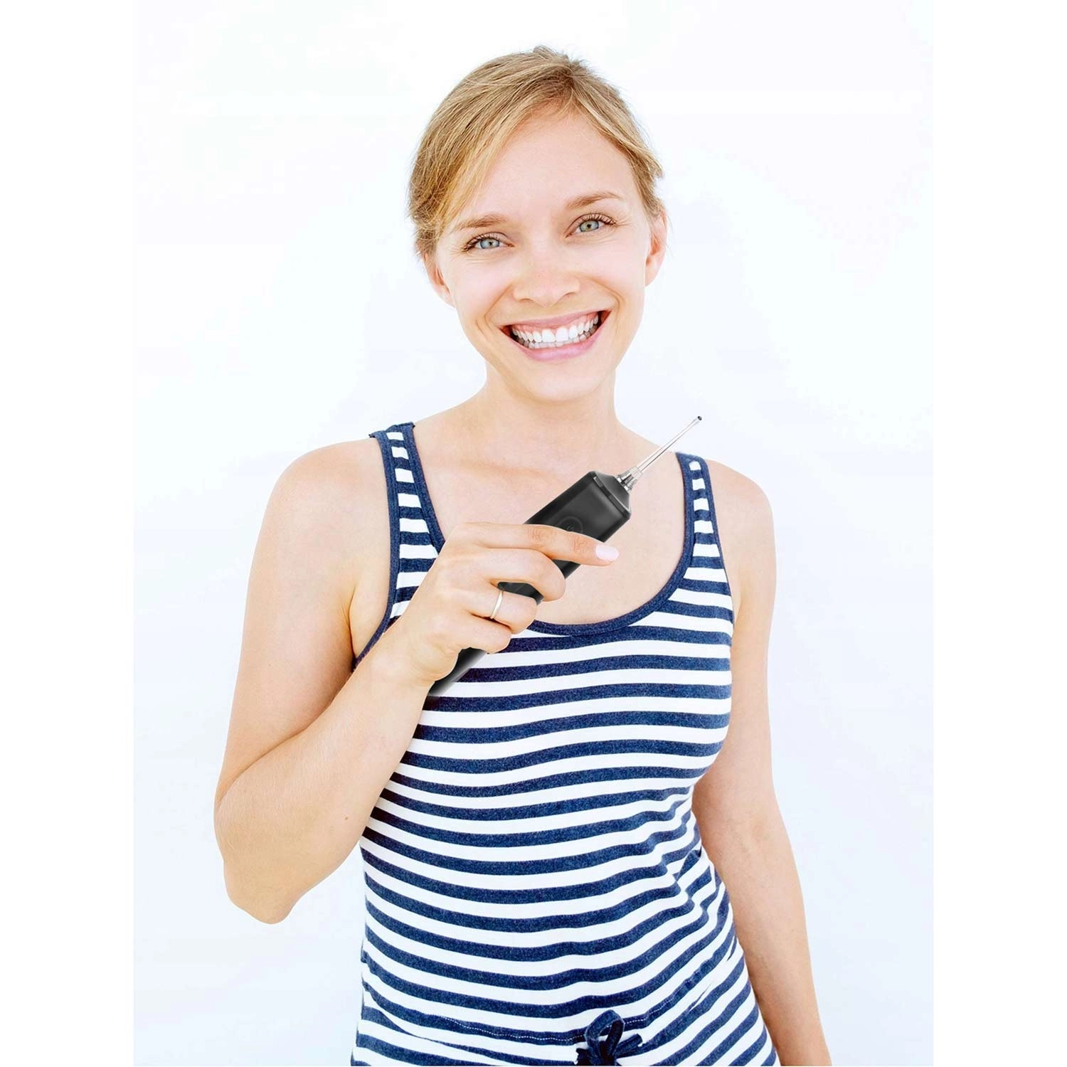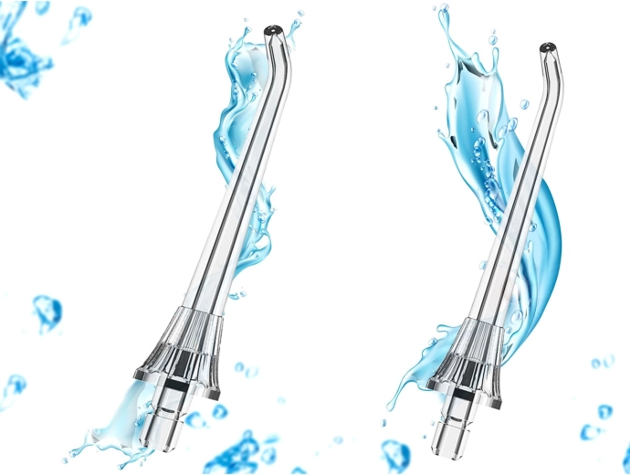 Úzká, mírně zahnutá tryska směruje silný, ale šetrný proud vody přesně tam, kde je potřeba – mezi zuby a podél linie dásní. Účinně nahrazuje dentální nit.