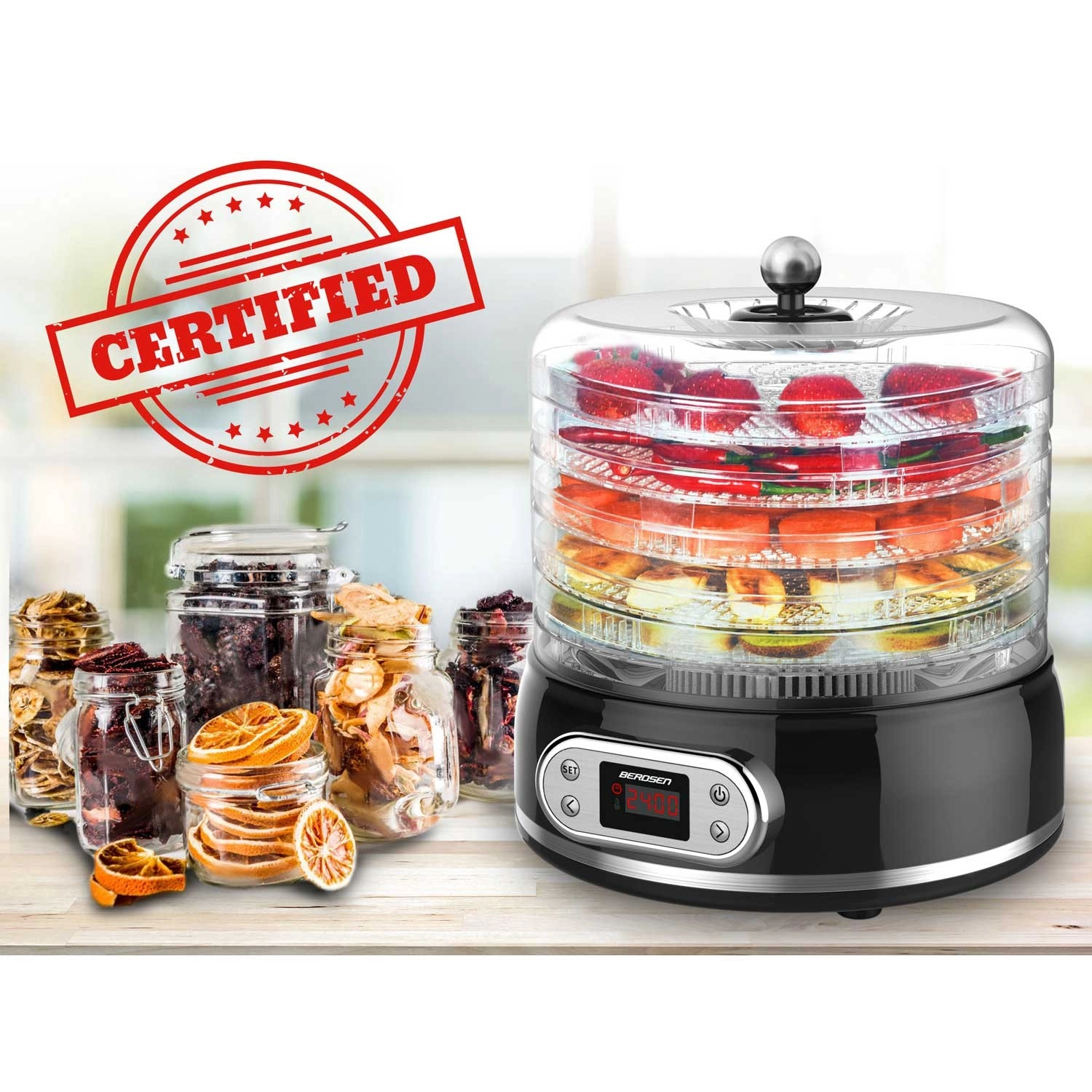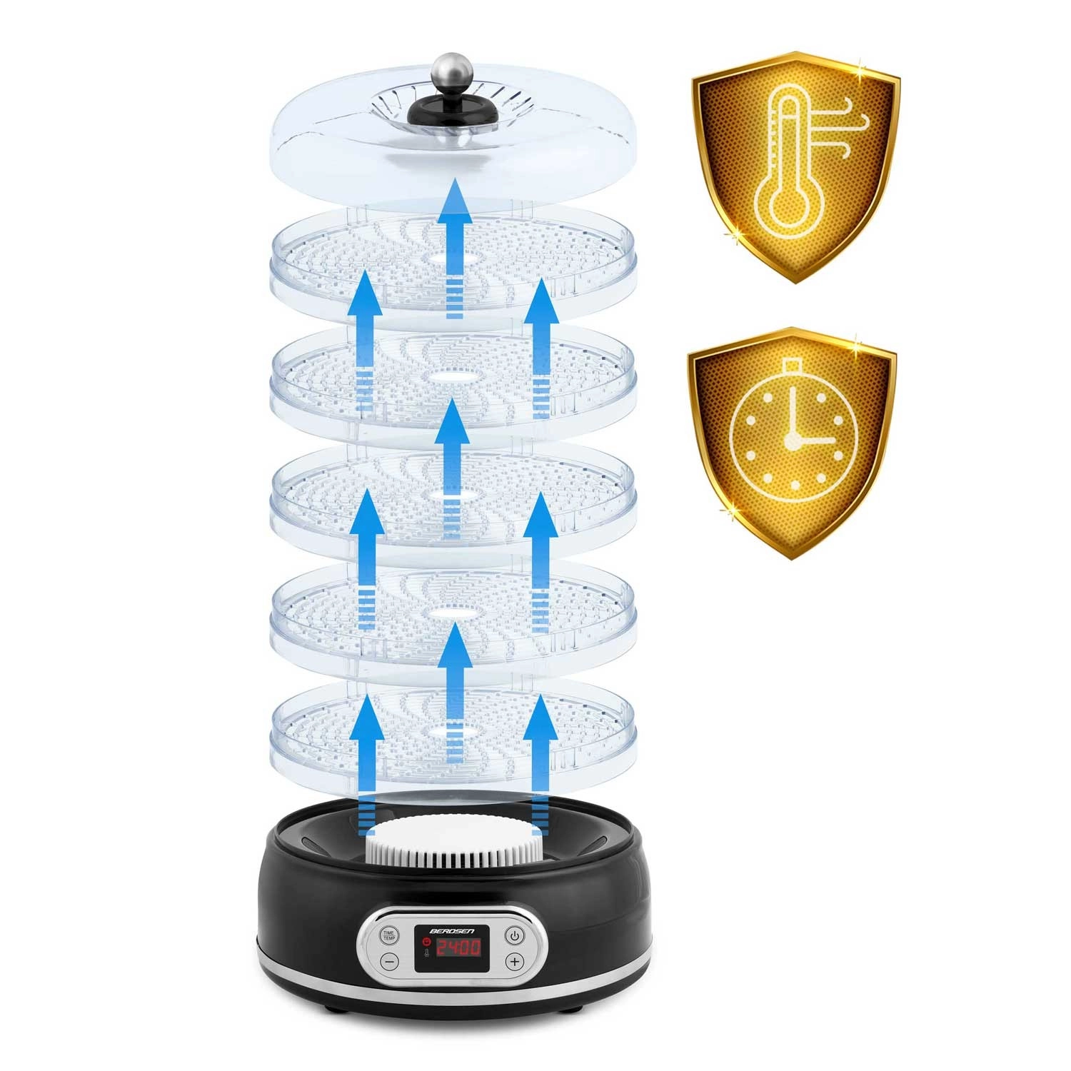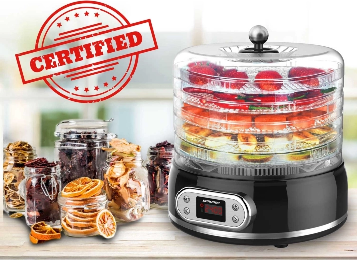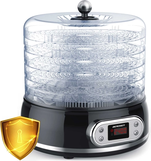 Vytvářejte zdravé a chutné pochoutky – od křupavých jablečných kroužků přes sušené bylinky až po domácí jerky. Sušička Berdsen s elektronickým ovládáním a čitelným displejem zaručí precizní nastavení času i teploty. Termooběh zajišťuje rovnoměrné proudění teplého vzduchu, takže plátky sušíte efektivně bez přepékání.