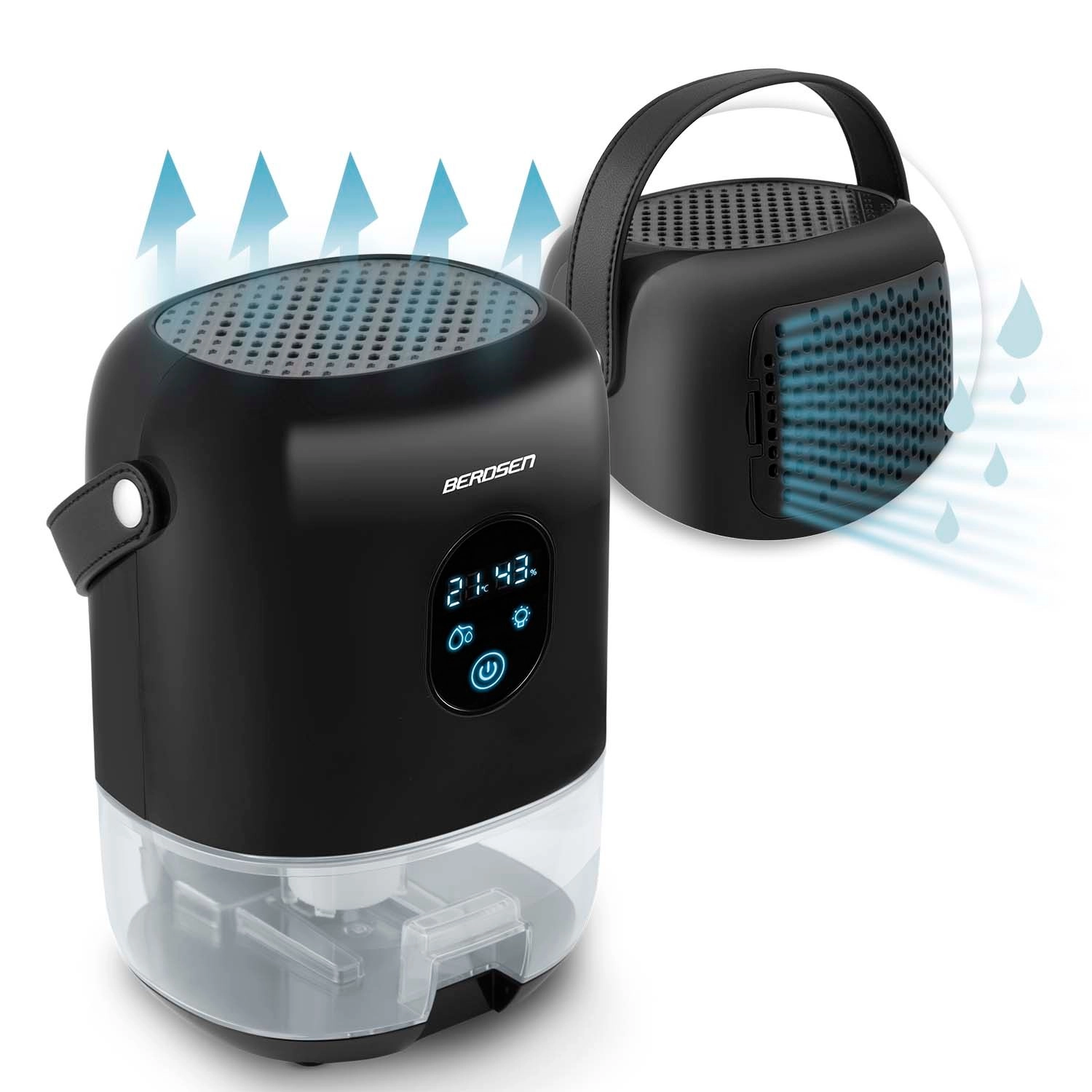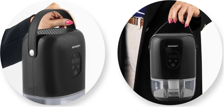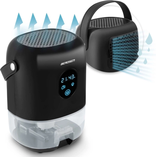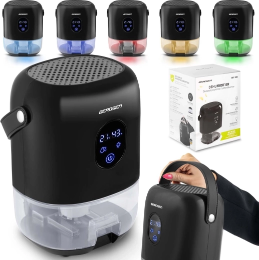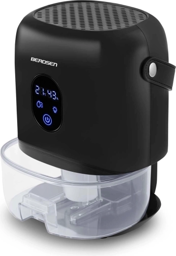 Kompaktní odvlhčovač vzduchu BERDSEN BR-10B účinně snižuje vlhkost v místnosti, zlepšuje kvalitu ovzduší a urychluje schnutí prádla. Nabízí tichý provoz až 34 dB, nízkou spotřebu 22,5 W, velký vyjímatelný zásobník 1000 ml a přehledný dotykový displej s indikací vlhkosti. Stylový design s LED osvětlením a praktickým koženým poutkem se hodí do každého interiéru.