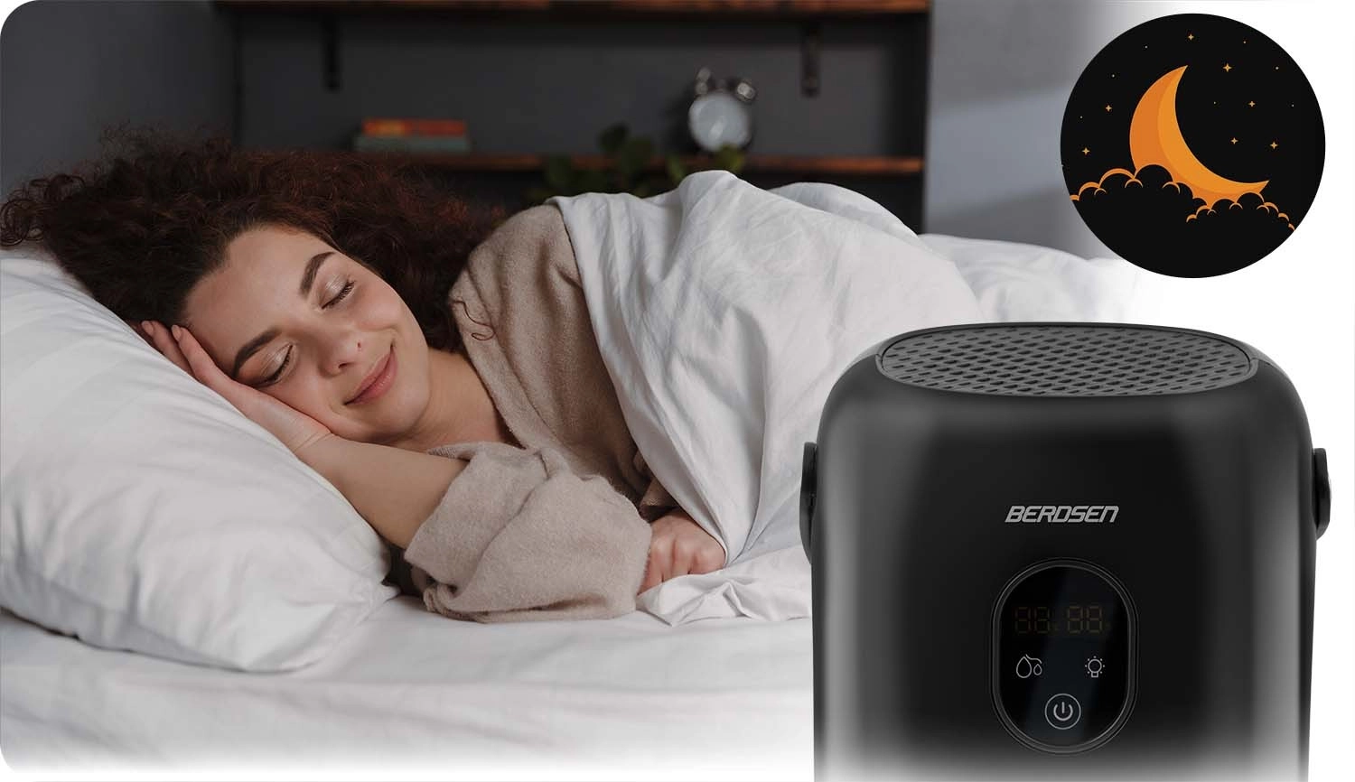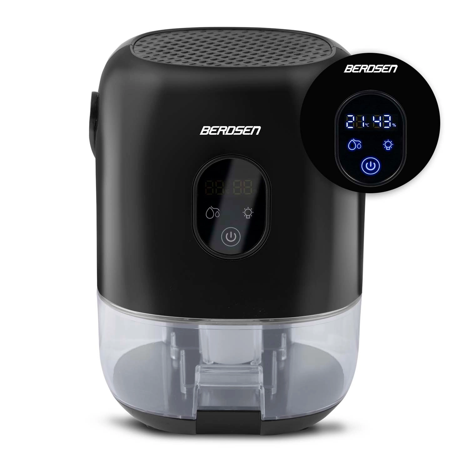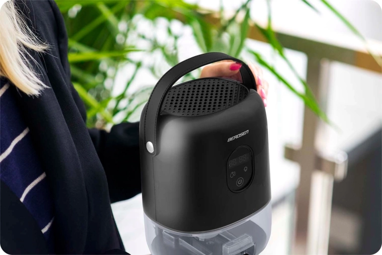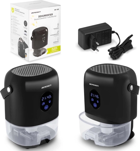 Odvlhčovač BERDSEN BR-10B je spolehlivé řešení proti nadměrné vlhkosti, plísním a zatuchlému zápachu. Díky termoelektrické technologii Peltier pracuje energeticky úsporně a mimořádně tiše, takže je ideální do ložnic, obývacích pokojů, koupelen i šaten. Integrovaný displej zobrazuje aktuální vlhkost a upozorní na plný zásobník.