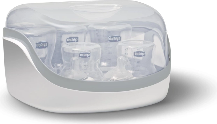 Sterilizátor do mikrovlnné trouby CHICCO je navržen pro rychlou, účinnou a praktickou péči o dětské krmení. Využívá sílu páry k hygienické sterilizaci lahví, saviček a drobných doplňků bez použití chemických prostředků. Díky kompaktním rozměrům se vejde do většiny mikrovlnných trub a snadno se přenáší.
