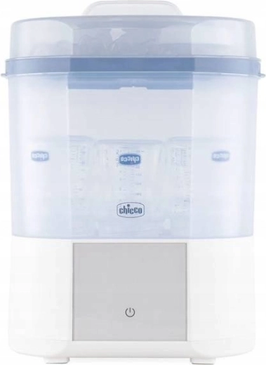 Chcete mít dětské lahve, dudlíky a kojenecké příslušenství hygienicky čisté bez námahy? Chicco elektrický parní sterilizátor s funkcí sušení zajišťuje účinnou dezinfekci díky páře a následnému aktivnímu sušení, které brání kondenzaci a zbytkové vlhkosti. Ovládání je intuitivní přes dotykový panel, takže si snadno zvolíte sterilizaci, kombinovaný cyklus sterilizace + sušení, nebo pouze sušení.
