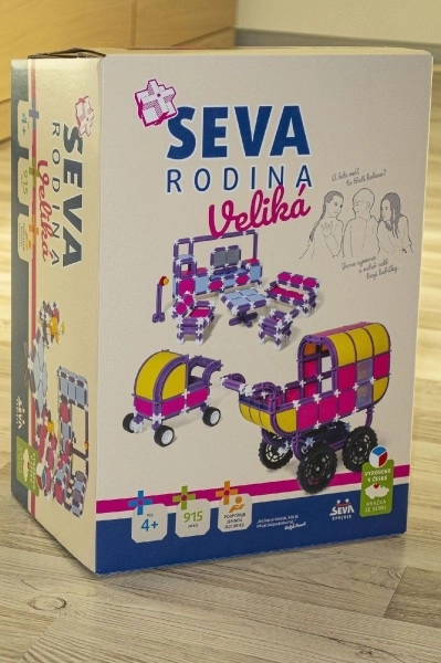 Stavebnice SEVA patří mezi české klasiky – na trhu je od roku 1979 a její obliba stále roste. Variabilní dílky umožní dětem i dospělým stavět vozidla, stroje, letadla, budovy, nábytek či kuchyňku. Tato sada Rodina veliká nabízí opravdu štědrý obsah pro hodiny tvořivé zábavy.