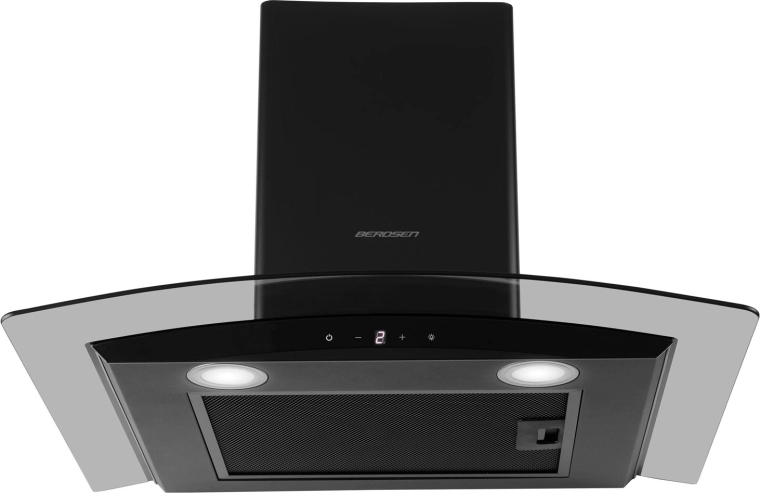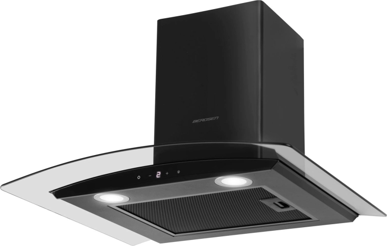 Komínový kuchyňský odsavač 60 cm BERDSEN BT-216, černé sklo